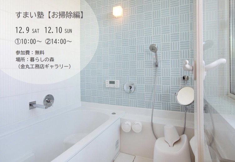 すまい塾 ‐お掃除編‐ ■日時:2023年12月9日(土)~10日(日) 各日2回開催 ➀10:00~ ②14:00~ ■会場:暮らしの森〈金丸工務店ギャラリー〉 ■申込〆切:2023年12月8日(金) …