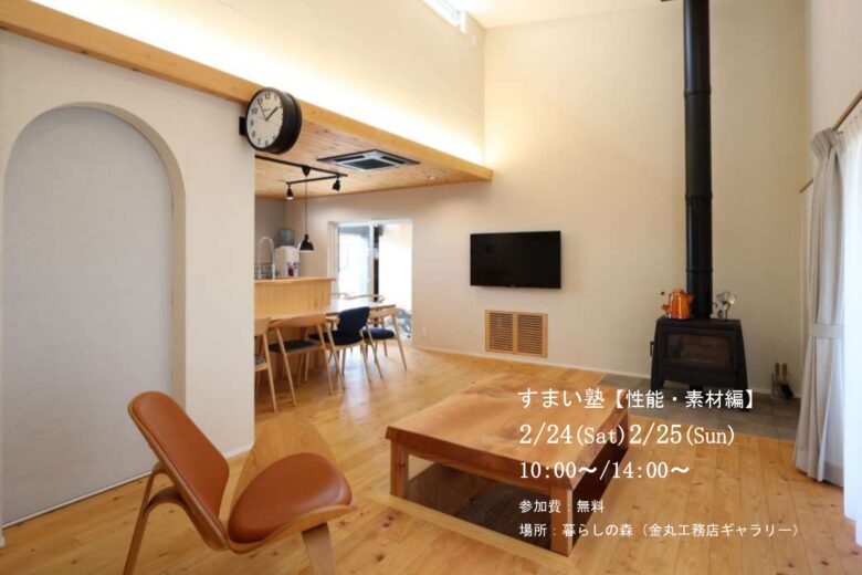すまい塾 ‐性能・素材編‐ ■日時:2024年2月24日(土)~25日(日) 各日2回開催 ➀10:00~ ②14:00~ ■会場:暮らしの森〈金丸工務店ギャラリー〉 ■申込〆切:2024年…