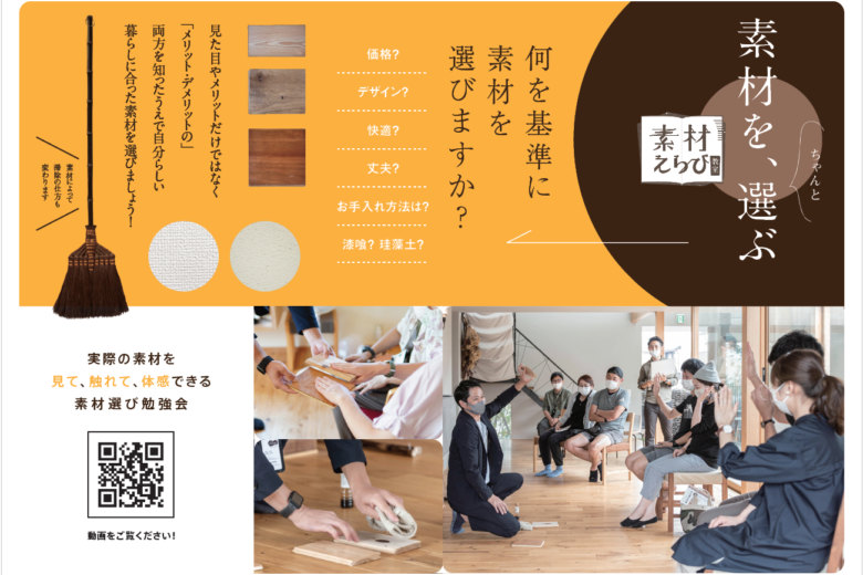 すまい塾 ‐素材編‐【素材えらび教室】 ■日時:2024年5月25日(土) 14:00~ ■会場:暮らしの森【金丸工務店ギャラリー】 ■申込〆切:2024年5月24日(木) 17時 まで《完全予約制》 ■参…